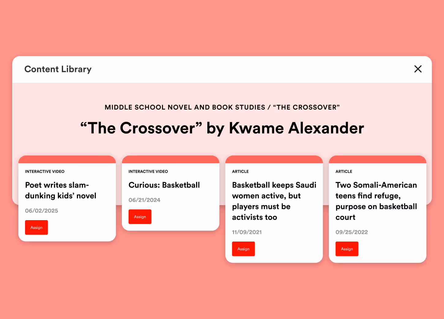 Our content library of over 18,000 pieces of content cover a range of curricular topics and student interests and include collections dedicated to helping students build background knowledge on any topic, book, or theme covered in class.