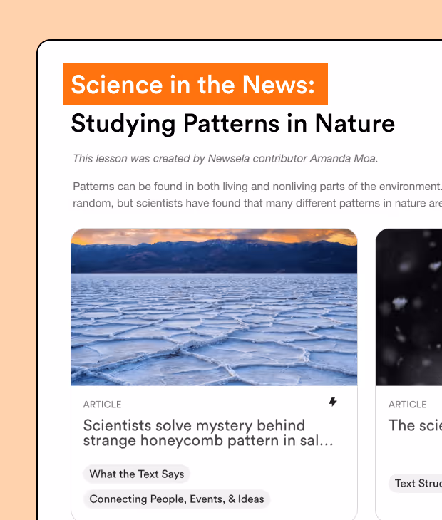 Bring science to life with Newsela STEM, your classroom-ready solution for real-world content, videos, and lessons—all aligned to standards.